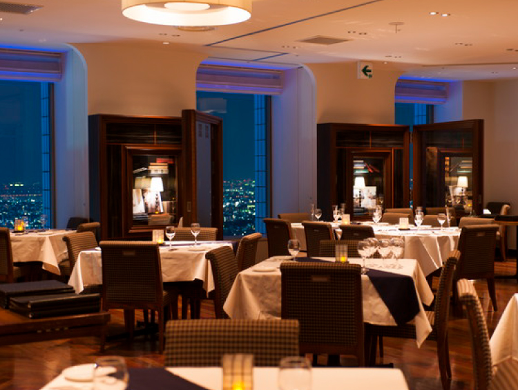 地上高220m。オープンキッチン併設のダイニングホールからは、東京・都心を一望できます。